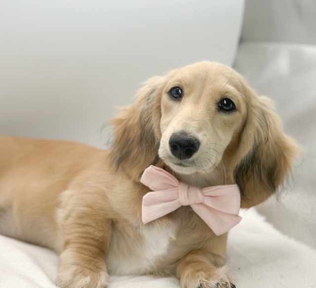 Sunny is a beautiful black and cream dapple dachshund. She is as sweet as she is beautiful! She wouldn’t hurt a fly and wants to be a couch princess. She is what dreams are made of! She will be retiring end of 2025.